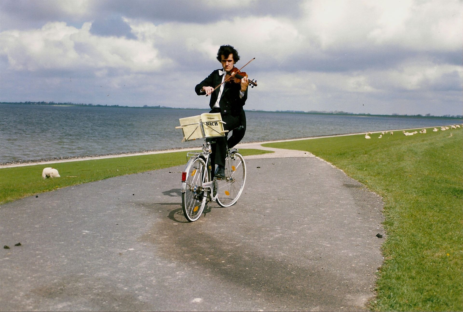 Es handelt sich um ein ganz normales Straßenfahrrad mit Tourenlenker und natürlich einer Rücktrittbremse. Der einzige Umbau am Rad ist der Tausch des Sattels gegen einen Notenständer.